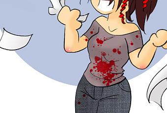 Suite et fin de mon petit délire!! Ne vous inquiètez pas, je vais très bien, je sens encore un peu la colle UHU, mais à part ça on dirait presque pas que je me suis mangée une tronçonneuse (oups, mon nez a dû tomber quelque part... ah non c'est vrai, c'est juste que je le dessine jamais!).
