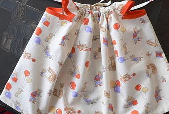 Clap de fin pour la pièce de tissu de deux mètres dont j'ai tiré un pyjama pour Hugo en 4 ans, un petit ensemble tunique et pantacourt pour Apolline, et maintenant un tablier tout simple, taillé dans un rectangle tout plat avec une coulisse en haut et deux ouvertures en arc de cercle pour les bras.