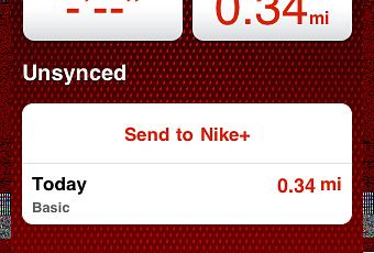 A la fin de l’entrainement, une bulle apparait sur l’onglet History indiquant que la course fraichement terminée n’a pas été envoyée sur Nike+ et propose donc de se connecter sur le site Nike+ version iPhone