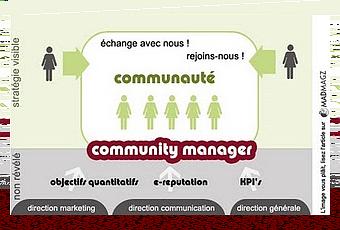 Désigné comme le porte parole "officiel" de la société sur le web, le Commmunity Manager ou gestionnaire de communauté aura pour rôle de « parler » et surtout « faire parler » de la marque sur la toile pour créer un échange et un partage directe avec sa cible. Une sorte de pont entre sa boite et les internautes.
