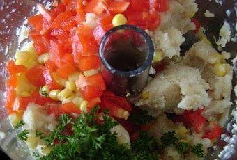 2) Ajouter le poivron en dés, les grains de maïs et le persil haché.