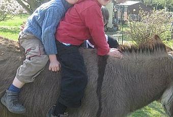 Et au soleil dans le jardin de mon amie Claire (et de son mari Bernard), enfin jardin, très très grand jardin, avec une prairie pour Barnabé l'âne. Et oui certaines ont des chats, et d'autres des ânes. Les enfants, vous vous en doutez, adorent aller chez Claire et Bernard, faire un tour sur son dos (le dos de Barnabé pas celui de Bernard), et lui donner des pissenlits pour le remercier après.