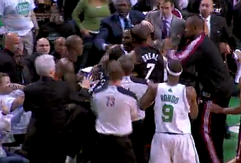 Les arbitres ont dû regarder à plusieurs reprises l'altercation qui a eu lieuHier se jouait un match très intéressant : les Celtics recevaient le Heat à l'occasion du premier match de cette série qui s'annonçait déjà explosive. À 40 secondes de la fin du match, Kevin Garnett a été expulsé de la rencontre après avoir récolté une double faute technique en s'étant débattu violemment de plusieurs joueurs du Heat, attroupés autour d'un Paul Pierce touché à l'épaule.