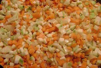 3) Pour la garniture: Hacher les oignon, les échalotes et l'ail. Faire dorer dans un peu de matière grasse.