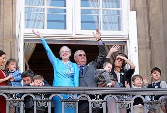 C'est extra de voir les danois petits et grands attendre avec impatience que la Reine sorte au balcon de son palais pour les saluer . Ils agitent tous le drapeau (du Danemark , symbolisant aussi l'anniversaire) en son honneur et entonnent un chant . Ce jour là la garde royale est habillée en rouge et non plus en bleu /gris (ce changement de couleur a lieu aussi le 1er janvier ) .