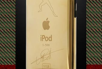 Voici une version originale de l’iPod Touch : « Usain Bolt Gold iPod ». Le champion olympique du 100 et du 200 mètres, Usain Bold a accepté de poser sa signature au laser sur une version tout en or du fameux baladeur Apple. En plus, cette édition spéciale arbore, sur sa coque arrière, un dessin de la désormais mythique pose de « tir à l’arc » du champion d’athlétisme.