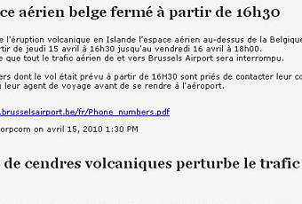 Cela perturbe évidemment de nombreux voyageurs en cette fin des vacances de Pâques. Certains redoutent de ne pouvoir partir tandis que d'autres s'inquiètent à propos de leur retour. Et beaucoup d'entre eux ont le même réflexe : visiter les sites Web des aéroports d'où ils devaient partir : celui de l'aéroport national et celui de Charleroi.