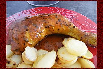 Enfourner pour environ 1h en arrosant les cuisses de la sauce régulièrement.