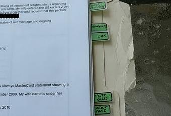 The process if simpler than when we obtained the first green card since we only have one form to fill: the I-751 (vs. six in our case for my first green card). To that of course you have to add a $545 check and all sorts of papers to prove that the marriage is legitimate. USCIS (United States Citizenship and Immigration Services) wants to see among other things that finances are mingled. Indeed for a fake marriage there are less chances that the parties involved will share accounts or buy a car together. They expect documents from the date of the marriage, but generally anything that comes after the first green card approval.