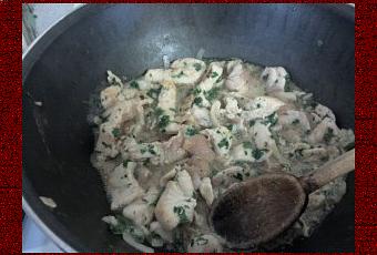 Cuisson au wok, saisir la viande et ses condiments, ajouter un peu d’eau ou de vin, laisser mijoter une heure ou deux, plus c’est mijoté pour le veau plus c’est tendre !!! bon appétit