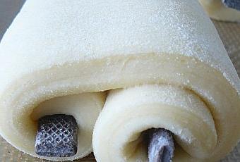 C’est une recette de croissants trouvée sur le site de « Christophe Felder » que j’ai transformée en chocolatines.