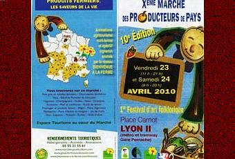 Auvergne de Lyon, l'association des auvergnats de Lyon vous convie au 10ème marché de producteur de pays, il aura lieu le vendredi 23 avril de 11h à 21h et le samedi 24 avril de 9h à 20h. Vous pourrez découvrir des animations, des sujets sur l'agritourisme, la nin-ferme.