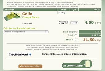 1 – La page « Panier » ou de façon classique on peut rajouter / supprimer des articles, on peut aussi connaitre à partir de cette page le montant de ses frais de ports ou faire une simulation pour l’étranger.
