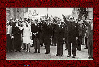 (Photo : Samaranch, 1e en partant de la droite, effectuant un salut fasciste en 1974).