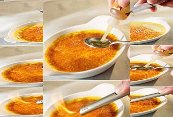On le remplace par ce kit de caramélisation sans danger (si ce n’est celui de la gourmandise) qui permet de flamber les desserts devant les convives en un tour de main. Il comprend un petit flacon de 32 ml d’alcool gourmandises et 8 sachets-doses d’éclats de caramel permettant de réaliser 8 desserts individuels.
