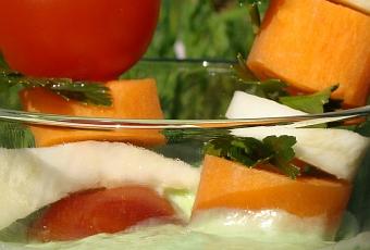 Je vous propose une petite verrine colorée et vitaminée pour un apéritif light et printanier. Un petit délice simplissime avec les herbes fraîches du jardin. Source : un vieux “cuisine actuelle”.