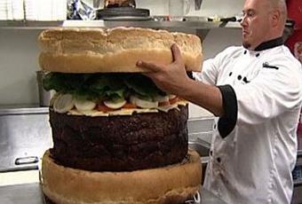 Steve Mallie, un restaurateur américain, a mis au point le plus gros hamburger mondial. 85kg au bas mot, je pense que ça a dû faire la joie des estomacs de tous les spectateurs du Guiness Book des records ce jour-là! :)