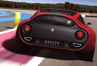 Pour son centenaire Alfa Roméo avait confié une étude de style au trois carrossiers italiens. Pininfarina et Bertone on rendu leur copie à l’occasion du avec les concepts respectifs 2uettottanta et Pandion. Zagato qui n’a donc pas exposé son concept à Genève , l’expose les jardins de Villa d’Este ce week-end à l’occasion du Concours d’Elegance. Cette étude de style n’est pas simplement un maquette, puisqu’il s’agit du châssis tubulaire d’où le T dans TZ couplé à une coque en carbone, le tout habillé par une carrosserie en aluminium. Comme le concept Pandion de Bertone cette Alfa Roméo Zagato TZ3 reçoit le V8 450 chevaux de l’Alfa 8C Competizione.