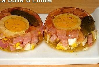 Pour servir, tremper les ramequins dans l'eau chaude pour démouler les aspics. Déguster avec des corichons.
