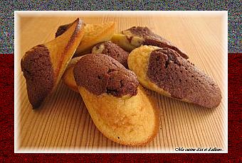 Beurrez légèrement les moules à madeleines et rempliisez-les au 2/3 en alternant les deux