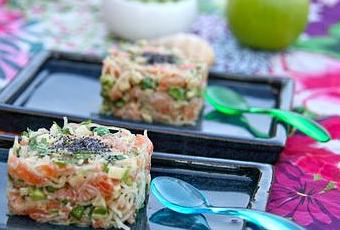 photo empruntée chez LoukoumJ'ai eu envie de goûter ce mélange associé au crémeux de la mayonnaise dans un tartare de saumon.