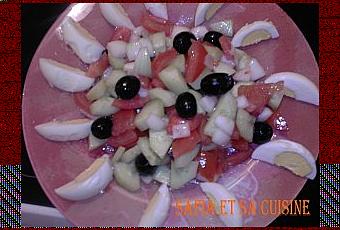 Aujourd'hui voici une petite salade toute simple mais bien rafraichissante qui accompagne volontier un barbecue ou comme moi un poulet frite!!