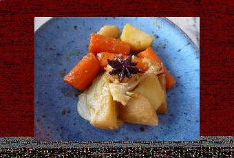 La particularité de cette recette, comme toutes celles de ce livre, est qu'elle est épicée bien sûr. Il s'agissait de légumes variés (jeunes carottes et navets, fenouil, ...) accompagnés d'anis étoilé, cannelle, garam masala. Les légumes ont cuit tranquillement et étaient fondants. Les épices font de cette recette un plat qui s'est avéré original, très agréablement parfumé et en un mot, délicieux. On peut bien sûr varier les légumes et essayer ses propres accord d'épices.