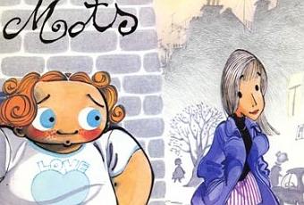 Venons-en maintenant à la couverture. Elle est coupée en deux par le mur. La situation est réaliste, mais elle est aussi signifiante : d'un côté le soleil, la lumière, les arbres, l'insouciance, la légereté, la finesse et la vie ; de l'autre, les rondeurs, les boucles de cheveux, le repli, l'enfermement, les complexes, la grisaille du quotidien, le dos au mur face aux contraintes familiales ou sociales. Les caractères qui désignent les personnages sont aussi dans des formes très opposées, ceux de Bidouille sont rondouillards comme lui, ceux de Violette sont écrits en cursive bien personnalisée. Le titre offre une troisième police plus neutre en apparence, mais qui est d'une calligraphie volontairement maladroite et en outre avec un pâté ! On a bien l'idée de deux mondes différents.