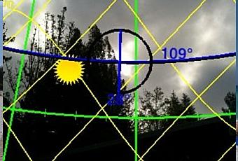 • Affichage dynamique des chemins quotidiens et annuels du soleil pour l'endroit courant.