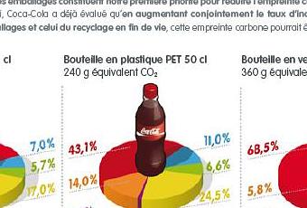 Ramené à l’unité, le plastique est le contenant le plus écologique : la bouteille de Coca-Cola de 50cl affiche 240 grammes de CO2 et la bouteille de 2 litres 500 grammes.