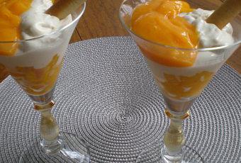 Garnir le fond des coupes avec la mangue coupée en petits morceaux
