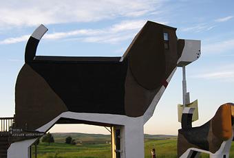 Dennis et Frances, deux artistes américains spécialisés dans la sculpture en bois à la tronçonneuse, ont eu le flair d’investir pour concrétiser leur projet d’hôtel canin. Inauguré en 1997, celui-ci rend hommage aux hôtels-restaurants à l’architecture originale d’une autre époque qui essaimaient sur la route des vacances. N’hésitez pas à vous arrêter si vous avez les crocs, surtout que les repas servis ne manqueront pas de vous mettre l’eau aux babines.