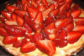 Le laisser refroidir. Garnir de crème au citron puis des fraises.
