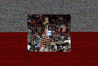 A 0,6 seconde de la fin, l'équipe à domicile (Cibona en blanc) marque un panier et passe devant, tout le monde saute de joie, le public est en délire, mais c'est sans compter sur l'équipe adverse (Partizan en noir) ...