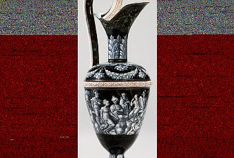 peinture en grisaille composée selon la technique de l'émail sur cuivre ; avec sur la panse la représentation de Psyché reçue dans l'Olympe, par Pierre Courteys (1520-1591), d'après une gravure