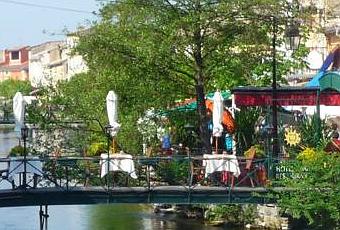 Nous voici donc dans la bien nommée Isle-sur-la-Sorgue, petite ville charmante qui vit essentiellement du tourisme et de la brocante, l’un alimentant l’autre et inversement. Le touriste est mi-exploité mi-chouchouté, un peu comme dans tous ces lieux qui savent vendre leur paysage. Le dîner en bord de Sorgue, voire sur une passerelle enjambant celle-ci, est très tendance (mais on mange nettement mieux en général dans les restos hors ruisseau). Du coup, les terrasses des bistrots et cantines s’approprient les trottoirs voire un peu plus, et, comme aucune municipalité à ce jour n’a été assez gonflée pour limiter, ou même interdire, la circulation automobile dans les rues les plus touristiques, le piéton lambda s’entraîne chaque jour à la corrida contre les véhicules divers mais toujours motorisés. C’est très désagréable.