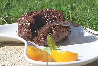 Versez la pâte dans un ramequin , y glisser le carré de chocolat et enfournez-le pour 10minutes.