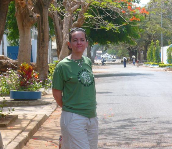 A Conakry, frappée d'immobilisme hôtelier, j'aurais donc eu du mal à acheter des chaussures et même si j'avais voulu, je ne sais pas bien si j'aurais pu car je n'ai jamais ne serait-ce qu'entraperçu une boutique qui en vendait. En revanche, j'ai vu moult sandales en plastique (de celles que les européen(ne)s portent sur les rochers pour ne pas écorcher leur tendre voute plantaire) sur de vagues étals de marché.En regardant ces photos, je me disais que mes tenues vestimentaires étaient vraiment très internationales : les 2 tee-shirts sont singapouriens, le short beige vient de Casablanca, le pendentif en argent est made in USA et le tout a été acheté au cours de missions de conseil. Accessoirement, si Liliba est trèèès observatrice, mais vraiment 13 observatrice, elle reconnaîtra peut-être son joli sac à livre se baladant dans l'une des 3 ou 4 rues bitumées, résidentielles et photogéniques de Conakry.