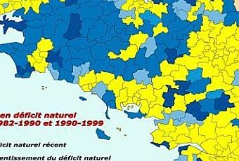 Voici une carte (crédit: Gwenael Henry pour l'UDB) qui illustre bien un des problèmes majeurs en Bretagne: le déséquilibre de plus en plus affirmé entre l'est et l'ouest. Urbains contre ruraux, c'est l'inverse de la logique des "pays" dont la Bretagne est héritière depuis... pff... depuis toujours? La réforme des institutions mod-Sarkozy se fout bien de l'aménagement du territoire puisque les pays seraient purement et simplement supprimés et les grands centres urbains (Nantes et éventuellement Rennes) pourraient devenir des "métropoles" aux compétences plus larges qu'un conseil régional!