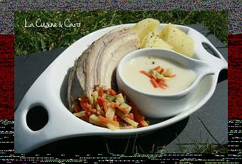 1. Faire cuire au court-bouillon la saumonette avec les pommes de terre coupées en gros morceaux, pendant 20mn environ.
