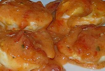 Ecaler les oeufs et les couper en deux, les mettre dans un plat côté bombé en dessous, recouvrir avec la sauce tomate et enfourner pour 10 minutes à four chaud 180°C.