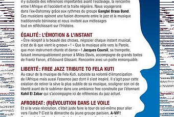 L'Afrobeat, le style musical crée par Fela Kuti est une question! L'association F.E.L.A. (Fraternité-Egalité-Liberté-Afrobeat) se propose d'y répondre grâce à des créations musicales autour des principes fondateurs de la république française et de l'oeuvre d'une des plus grandes icônes africaines.