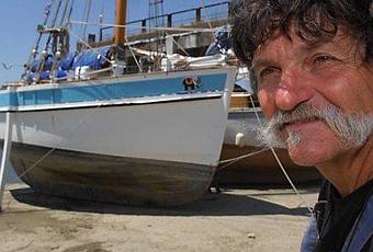 Pierre Raffin naviguait en solitaire à bord de Babar, un voilier en bois (à l'arrière-plan) avec lequel il avait déjà bouclé un tour du monde. N. B. Sur les traces des marins de Lapérouse, Pierre Raffin a été victime d'une grave avarie devant Panamá.