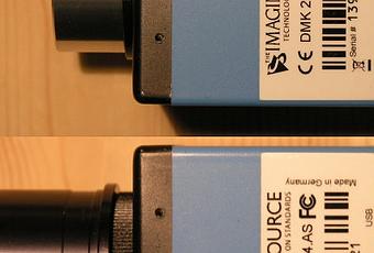 J’ai récemment fait quelques images intéressantes. Tout d’abord, j’ai voulu tester un filtre 1,25″ raccordé à un réducteur de focale avec la DMK 21 (pour avoir un champ plus large). Comme j’ai un Newton f/5, l’adaptateur C/CS de la DMK était trop long et il réduirait trop l’image (infocussable. Ce serait bien pour des télescopes avec une focale à 9 et plus). Donc, j’ai pris un plus petit adaptateur (15mm qui donne une réduction de 30 à 33mm de la distance du CCD et non 60 mm comme pour l’adaptateur standard) :