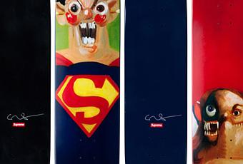 Supreme a fait appel à l’artiste contemporain new-yorkais George Condo pour réaliser une série de trois plateaux de skate. Ces derniers seront disponibles à partir du 6 mai dans les boutiques US de la marque ainsi que sur leur e-store, puis le 8 mai au Japon.