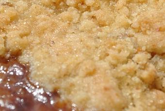 - Pour ceux qui veulent un crumble ayant un peu de tenue dans l’assiette, mettre une pâte brisée (maison de préférence) au fond du plat.