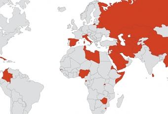 -Carte avec en rouge les pays qui ont des problèmes avec la liberté d'expression.