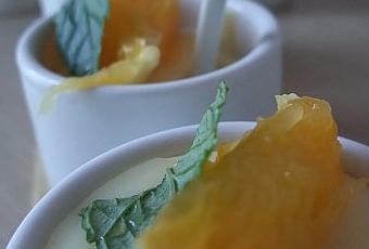 Nous faisons régulièrement avec un groupe d'amis des soirées oecuméniques réflexion-prières... et desserts ! C'était notre tour, j'ai fait des desserts avec le thème "acidulé" à base d'orange et de citron : gâteau au citron (c'est Mamie Gâteau d'Alsa qui m'a apporté son savoir-faire...), sablés au citron (recette déjà rédigée dans le blog), verrines et mini-coupes : crème à l'orange et panna-cotta au lait de coco.
