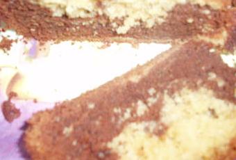 Verser la moitié de la pâte nature dans un moule à cake, préalablement beurré ou sulfurisé, puis la pâte au chocolat, puis le reste de la pâte nature, à l'aide d'une pique en bois, dessiner des arabesques dans la pâte, afin d'obtenir l'effet marbré.