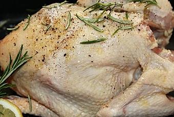 Poivrer et disposer le brins de romarins d'une belle branche sur le poulet.